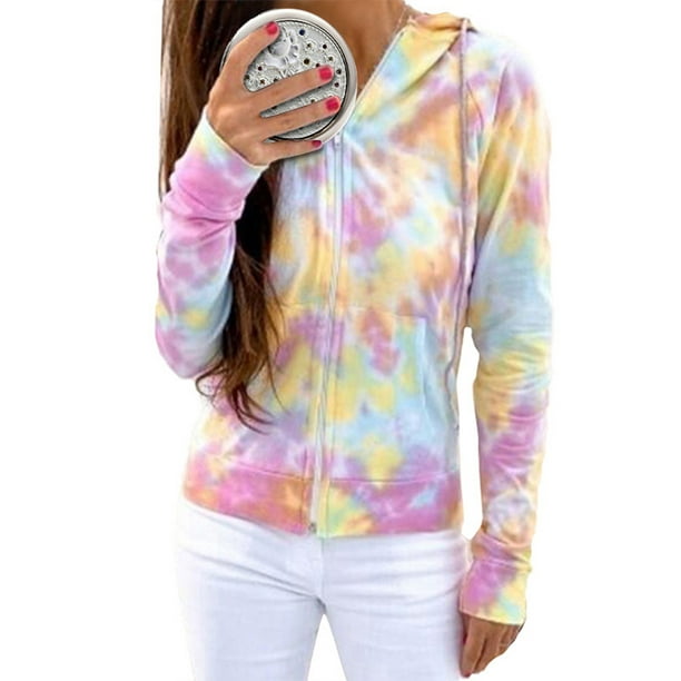 Multicolor Print Hoodies Jacket For Women Plus Size Casual Long Sleeve Zipper Coat Fashion Tie Dye Print Sweatshirt With Pockets Walmart Com